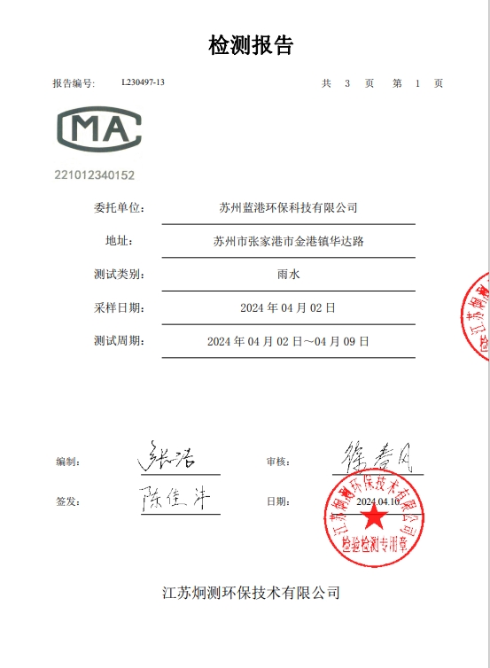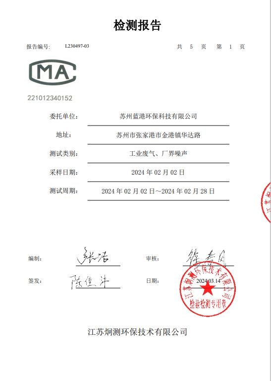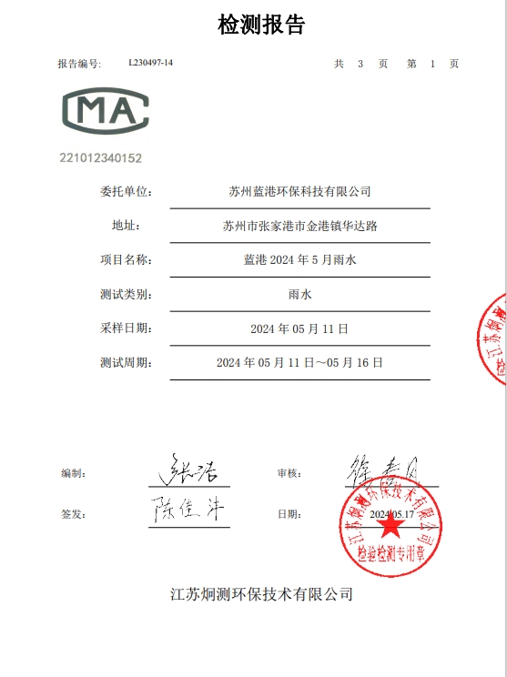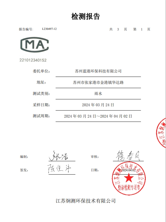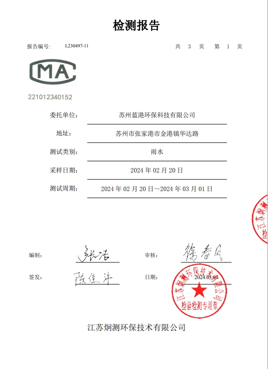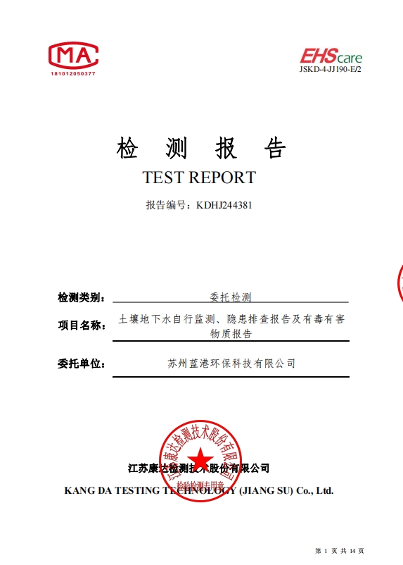 蘇州藍(lán)港環(huán)??萍加邢薰緳z測(cè)報(bào)告已公示,詳情請(qǐng)查...